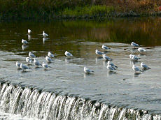 川の冬の風物詩です。ユリカモメなど多くの水鳥たちがやって来ます。140万人の都市の中心を流れる川が鳥たちの水辺なのは古都らしい風景です。