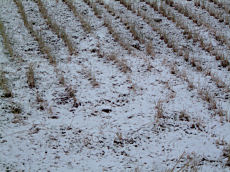 雪が積もることが少ない城陽市でも今朝は田圃にこのように積もっていました。京都市内に入ると車が行き交う道路にも雪が積もっていました。粉雪が舞う寒い朝の光景です。