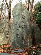 節分祭で有名な「吉田神社」の参道、吉田山山頂には、「紅萌ゆる丘の花」旧第三高等学校の寮歌の歌碑があります。吉田山からは送り火の大文字山がこのようにきれいに見えます。