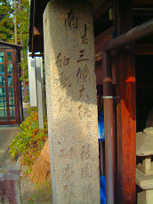 左京区北白川にある石仏です。子安観世音という鎌倉時代ので花売りの白川女は今でも必ずここに花を供えて商いにでるそうです。大日如来座像ですが、ここの石仏も立派なものです。石標で「南 三条大橋 知恩院」などと書かれています。嘉永2年という銘がありますので、157年前に立てられたようです。