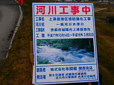 流れ橋付近の堤防を強化工事とかで削り取られている。工事していない堤防はこのように自然に溢れています。堤防が決壊するような事態になったこともないところを、無意味な工事をしているように思います。