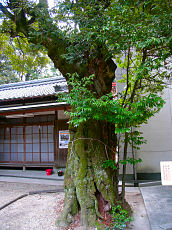城陽市寺田にある水度神社(みとじんじゃ)です。現在の本殿は室町時代の文安5年(1448年)に建立されて、国の重要文化財に指定されています。水度神社にある椎の木で樹齢約300年、樹高13m、幹周3.3mの古木です。