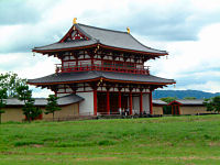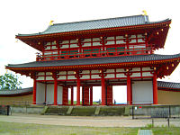 奈良市に平城宮の朱雀門です。平城宮は710年から784年までの奈良時代の都ですが、奈良文化財研究所が平城宮の復元工事を行っていて、復元された朱雀門なのです。