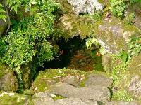 大原・寂光院への道端に建礼門院徳子が「ころころと 小石ながるる 谷川の 河鹿なくなる 落合の滝」と詠んだ「落合の滝」があります。建礼門院が京都から寂光院へ来たときに、この清水のあたりで日が暮れて、自身の姿が月光によってこの水溜りにおぼろに写ったと言われている「朧の清水」です。