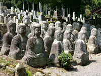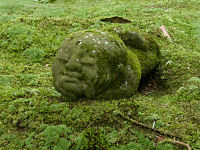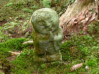 大原・三千院の庭にはこのような石仏があります。わらべ地蔵といって表情は可愛いものがありますが、土の中から顔を出しているのか、首だけしかないのかわかりませんが、少し不気味なわらべ地蔵です。
