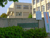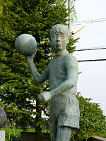 娘と息子が卒業した小学校です。小学校の銅像といえば、柴を担いで本を読んでいる二宮金次郎が定番でしたが、今の小学校はこのような銅像です。それと2002年日韓ワールドカップを記念してサッカーボールの記念碑もありました。