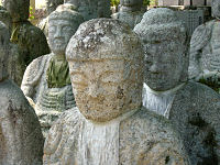 滋賀県高島町(白髭神社から少しのところにある)にある「鵜川四八体仏」です。天文22年(1553)六角義賢が生母の追善に阿弥如来座像を48体造ったが、現在は33体しかない。不足の13体は大津市坂本にあるが、2体は昭和62年10月に盗難にあったそうだ。このようなものを盗んでどうするのか。そっと隠れて見て楽しいのだろうか。