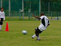 城陽市にはJ2の京都パープルサンガのクラブハウスがあります。エース・ストライカーのパウリーニョ選手のシュート練習です。(写真:左)平成14年度第82回天皇杯全日本サッカー選手権大会に優勝した時の記念碑(写真:右)です。