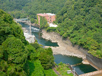 宇治川の上流にある「天ヶ瀬ダム」です。高さ73m長さ254m、1964年完成のドーム型アーチ式のダムです。右の写真は流れてくるゴミをフェンスで防いでいます。それにしても凄い量のゴミが流れて来るものです。
