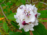 三室戸寺に咲いていた石楠花です。石楠花は、左の淡いピンク色がほとんどですが、白で中心部が紫色や真っ赤なものもあるようです。