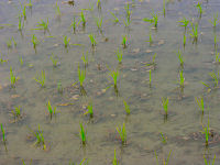 近くの田圃の水路に、ウナギがいました。農家の人の話だと「田ウナギ」といって、田圃に水を入れると出てくるのだそうです。人がいても警戒しているようでもなく、右の写真のように水面から顔を出して息をしています。