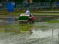 近所の田圃では田植えが盛んに行われています。兼業農家が多いのか、土日に田植えをする所も多いようです。