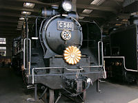 梅小路蒸気機関車館があり、多くのSLが保存され一部動態保存されています。左から特急「はと」「つばめ」を引いたシロクニ(C62型)、お召し列車(写真:中)、右は、D51はデゴイチと呼ばれて貨物列車を引いた蒸気機関車です。