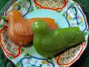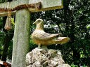 鳥居前にある茶店で、鳩餅を売っている。素朴な味で白、ニッキ、抹茶の3種で、鳩の形をした「ういろう」のような餅である。 |