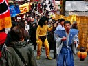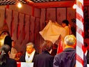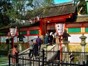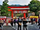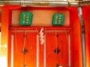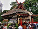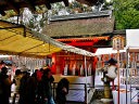 吉田神社(よしだじんじゃ)は、健御賀豆知命(たけみかづちのみこと)、伊波比主命(いわいぬしのみこと)、天之子八根命(あめのこやねのみこと)、比売(ひめ)神を祭神とする。社伝によれば、貞観年間(859~877)、藤原山蔭が奈良の春日大社の神を勧請したのが始まりである。文明年間(1469~87)吉田兼倶(かねとも)が吉田神道を唱え、斎場を神域内に設け全国の神を合祀して大元宮と称し、吉田神社に参れば全国の神社に参ったのと同じ御利益があるとしたため、急激に信者が増加した。2月の節分祭が有名で多くの人を集める。 |