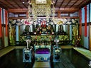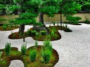 「廬山寺(ろざんじ)」は、円浄宗の本山で938年(天慶1年)元三大師(慈慧大師良源)が北山に与願金剛院を開いたのが始まりという。天正年間(1573~1592年)に豊臣秀吉によって現在地に移された。1964年(昭和39年)にこの地は「源氏物語」の作者紫式部の住居跡だったことが判明し、源氏の庭が造られた。白砂を敷き、苔を配し、紫色の桔梗の花が咲く庭である。2月の節分には、赤・青・黒の3匹の鬼が宝剣、斧、槌をもって踊る「鬼の法楽(ほうらく)」が演じられることでも有名である。