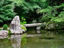 「蓮華寺(れんげじ)」は、天台宗の寺で加賀藩の家老今枝重直(いまえだしげなお)がこの地に出家して寺を建てるつもりであったが、1627年(寛永4年)に没したため孫の近義(ちかよし)が遺志を継ぎ蓮華寺をここに移した。木下順庵、石川丈山らが協力したそうである。庭園は池泉廻遊式の名園として知られ、詩仙堂の石川丈山の作庭といわれている。本堂前の灯籠は蓮華寺型と呼ばれ上部の笠が急勾配の珍しいものである。 |