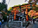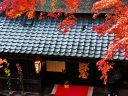 鳥居本(とりいもと)は、愛宕街道にあり愛宕神社の門前町で、藁葺き屋根や町屋風の民家が並んでいて保存地区に指定されています。「平野屋」は鮎茶屋として有名ですが、紅葉が美しく写真によく出てくる場所です。