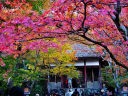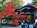 常寂光寺(じょうじゃくこうじ)は、静寂な常寂光土を思わせることからこの寺名が付いたそうですが、この紅葉時期にはそのような静寂さは全くありません。文禄4年(1595年)に開山された日蓮宗の寺院です。ここにも藤原定家の時雨亭があったと言われていますが、いずれにしろこの辺りにあったのでしょう。 |
