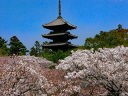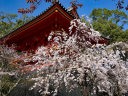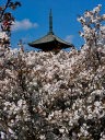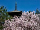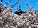 仁和寺といえば遅咲きの「御室の桜」が有名で、京都の中でも屈指のサクラの名所。ここ仁和寺のサクラはサトザクラという種類で、背丈の低く花びらが大きい。「わたしゃお多福御室の桜 はなが低くても人が好く」と歌われていたり「あの人、御室の桜やな」と云われると、鼻が低いとか、婚期が遅れているということである。見頃は4月下旬。 |