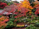 実相院(じっそういん)は、天台宗単立寺院ですが、室町時代から江戸時代には皇子や皇族の入室が続き天台宗寺門派では数少ない門跡寺院でした。岩倉門跡、実相院門跡と云われています。本尊は鎌倉時代の作と伝えられている不動明王です。寛喜元年(1229)鷹司兼基の子静基僧正により紫野に創建、その後、今出川通を経て、応永18年(1411)に現在地へ移転しました。狩野派の襖絵、古文書類が数多くあり、書院の庭池には、モリアオガエルが生息しています。