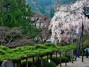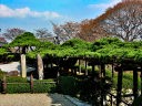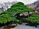 桂昌院が植えたとされる「遊龍の松」が有名で龍が這うように横に伸びている。高さ2m、全長54mほどあったが松食い虫の被害で一部が切られた。その横に枝垂れ桜があり春には綺麗な花を咲かせている。 |