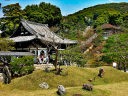 知恩院(ちおんいん)は、承安5年(1175)に浄土宗を開いた法然上人の草庵を結んだ旧跡に建てられた浄土宗の総本山である。左甚五郎の忘れ傘などの知恩院の七不思議や除夜の鐘でよくテレビ中継される重さ70トンもある梵鐘は日本三大梵鐘の一つでもある。 |