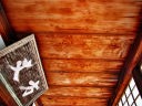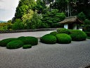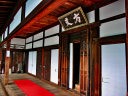 本堂前の庭は、小堀遠州作の比叡山を借景とした枯山水借景庭園となっていて、皐月の刈り込みが獅子の親子に見えることから「獅子の児渡し」と呼ばれています。方丈廊下の天井は石田三成に攻められて落城した伏見城の廊下の板が使われていて「血天井」と呼ばれています。 |