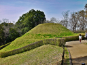 藤原時代(694〜710)に造られた、二段式円墳で、直径23m、高さ5mあります。埋葬者は不明ですが、天武天皇の皇子説、臣下説、朝鮮半島系王族説などの諸説があります。