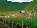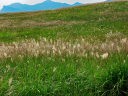 ススキを揺らせながら吹く風は清々しく秋のハイキングには絶好の場所だと思います。以前はどこでもあったススキが、外来のセイタカアワダチソウに浸食されて姿を消しつつあるので、曽爾高原はいつまでもこの状態であってほしいものです。 |