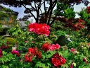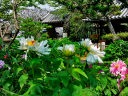 関西花の寺霊場第20番となっており、境内は奥に意外に広く一面の牡丹園で、400種余りの牡丹が咲く。冬の寒牡丹の藁帽子をかぶった可憐な姿も見逃せない。 |