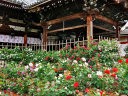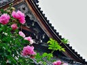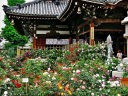 このおふさ観音には、イングリッシュローズを中心に約1800種およそ2000株のバラが栽培されていて、参詣者の目を楽しませてくれます。このバラは鉢植えなのが、少しガッカリするところです。 |