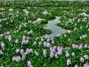 その前にある休耕田を利用して「ホテイアオイ」が植えられています。大和三山の一つである「畝傍山(うねびやま)」が望まれて沢山のホテイアオイが見事に咲いています。見頃は、9月です。