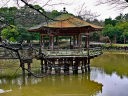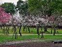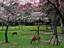 奈良公園の猿沢池を東に行くと鷺池(蓬莱池)があります。明治41年(1908)に貯水場として作られ、大正5年(1916)に浮見堂が出来ました。その北側に茅葺きの重要文化財の鎌倉時代とみられる「円窓亭」があり、その周辺に約250本の紅梅・白梅があります。
