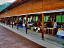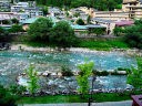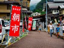 この温泉の一日は、名物の朝市で始まります。毎朝6時~8時(4月~10月)、6時30分~8時(11月~3月)に観光センター横で開かれ、浴衣に下駄履きの温泉客で賑わっています。春は山菜やタケノコ、夏はトウモロコシやモモ、秋はキノコやリンゴなど季節の野菜や果物、農産物加工品が並んでいます。 |