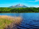 利尻礼文サロベツ国立公園の「利尻島(りしりとう)」です。 利尻島は、アイヌ語で「リイシリ」高い山の鳥から名付けられました。