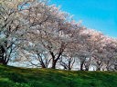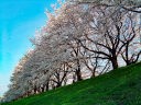 京都府八幡市の木津川と宇治川が、合流する「背割堤(せわりてい)」に1.4kmに250本の桜並木があります。染井吉野の桜並木が続いています。