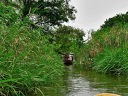 滋賀県近江八幡市にある「水郷めぐり」に行って来ました。近江八幡から安土に広がる西ノ湖は、水路で琵琶湖とつながっている内湖です。一面に葦が生えていてその間をゆっくりと屋形船で遊覧します。4m程の葦に囲まれているので、強い風があっても湖水は穏やかで、台風のときはこの葦原に逃げると安全だそうです。水深は浅く30~40cm程です。ボートなどを持っていれば自由に乗り入れることができるそうで、風が葦の葉を揺らす音しか聞こえない静かな水郷でした。