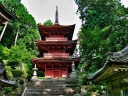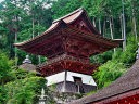 琵琶湖を望む長命寺山に西国三十三カ所の第三十一番札所の「長命寺(ちょうめいじ)」があります。武内宿禰(たけのうちのすくね)が長寿を祈願したという霊山に、聖徳太子が開いたという古刹です。808段の石段(駐車場からは少しの石段で本堂に着きます。)を登ると、永正13年(1516年)兵火で焼失して再建された本堂、三重塔、鐘楼などの伽藍が迎えてくれます。 |