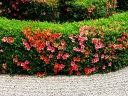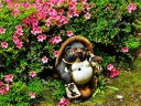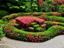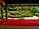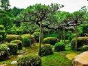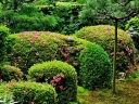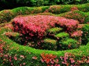 寛永年間の小堀遠州の作と伝えられる「蓬莱庭園」は、皐月の大刈り込み観賞式枯山水庭園として、蓬莱の世界を造りだしたもので、大波小波がうねる大海に、七福神を乗せた宝船がゆらぐ仙境を表しています。皐月が満開のときが、一番美しい庭園であることは当然のことです。 |