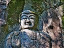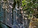 また、この近くに西和束弥勒磨崖仏(にしわずかみろくまがいぶつ)があります。約6m四方の自然石に彫られていて、正安2年(1300)の銘があります。微笑みを浮かべた温厚な顔をされています。