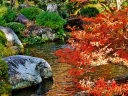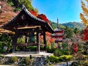 境内南側の斜面には、与楽苑という約5000坪の大庭園があり、4月下旬から5月上旬には2万株のツツジ、6月には1万株のアジサイ、7月から8月には蓮が咲きます。 |