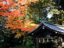 参道の両側には、桜、サツキ、カエデ等が枝を伸ばしていて、春、初夏、秋に彩を添えています。 |