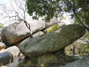 JR笠置駅の東にある笠置山(標高289m)がありますが、この一帯は笠置山自然公園になっています。今昔物語によると、鹿鷺山と記されていましたが、天智天皇の子大友皇子がこの山で狩りをしたとき災難に遭い、山神の加護によって助かったので、その場所に笠を置いたことから笠置山と呼ばれるようになったとか。建久3年(1192)に解脱上人貞慶が入山して弥勒信仰の中心道場として繁栄したが、元弘元年(1331)に京都を逃れた後醍醐天皇が笠置寺(かさぎでら)を行在所として、鎌倉幕府軍と戦ったが一カ月で敗北、寺は焼失したがその後再建されず江戸時代に再建された本堂など若干の堂宇があるだけになっています。 |